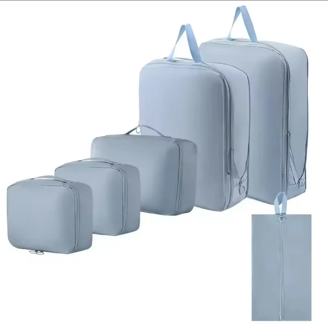 - 6-Piece Compression System: A versatile set of six bags designed to fit perfectly into any standard suitcase or carry-on.
